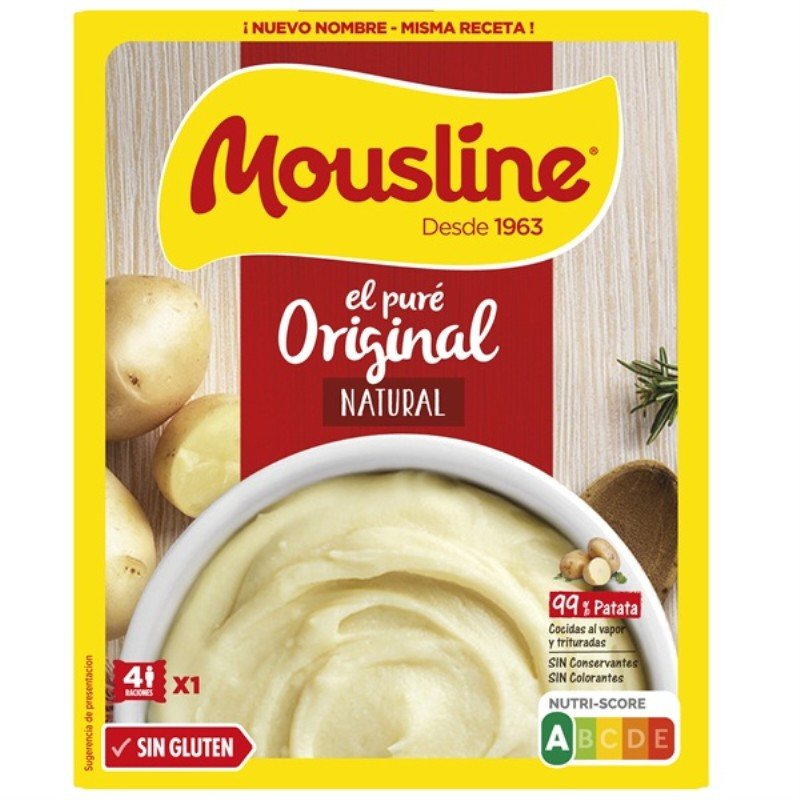 Patata deshidratada (99%)*, emulgente (mono y diglicéridos de ácidos grasos) (origen vegetal), cúrcuma, antioxidante: extractos de romero. *Origen: Francia. Envasado en atmósfera protectora.