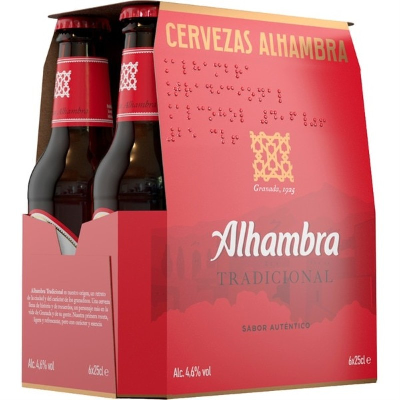 Pack de 6 botellas de 25 centilitros cada una de Alhambra Tradicional con 4,6% de Alcohol. Para un mayor disfrute, se recomienda consumir entre 4 y 6º C Apariencia: Cerveza de color dorado pálido, aspecto brillante y con espuma persistente Aroma: Cerveza Alhambra tradicional tiene una intensidad aromática es ligera, pero incluye una mezcla sutil de sensaciones afrutadas y florales Sabor: En boca la cerveza Alhambra tradicional tiene un amargor es bajo y suave, lo que unido a un cuerpo moderado, la hace muy refrescante Cerveza lager de estilo Pilsen de elaboración tradicional e inspiración alemana. Fermentación baja (Lager), con período de maduración para dejar evolucionar los sabores y filtración para dejarla brillante. Elaboración tradicional con las últimas tecnologías.