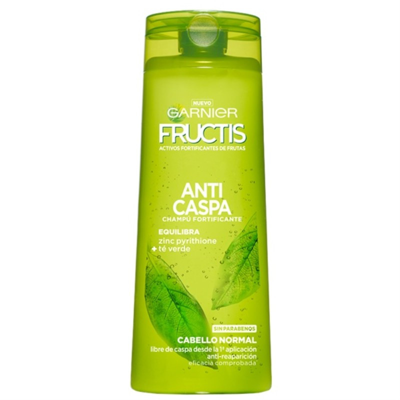 El Champú Fructis Anticaspa es un champú fortificante enriquecido con esencia de limón, extracto de té verde y zinc pyrithione anti-bacteriano para limpiar, equilibrar el cuero cabelludo y eliminar la caspa*. *Partículas visibles, uso regular.