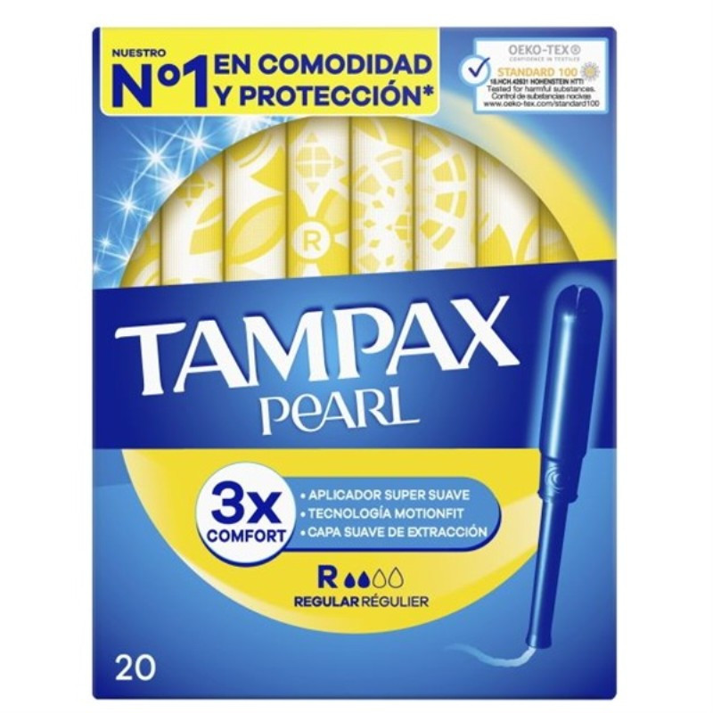 Los tampones Tampax Pearl Regular detienen las pérdidas antes de que se produzcan durante los días de flujo de escaso a normal. Sin perfumes. Estos tampones cuentan con un aplicador de plástico suave y un agarre antideslizante con relieve para ofrecer una inserción fácil y cómoda. La tecnología MOTIONFIT se expande con suavidad para adaptarse a la forma de tu cuerpo. También cuenta con Protección LEAKGUARD BRAID, una trenza para evitar que se produzcan fugas. El envoltorio de TAMPAX Pearl es resistente para llevarlo en el bolso, fácil de abrir y silencioso para una mayor discreción. Los tampones Tampax Pearl están ginecológicamente testados. También han sido sometidos a un análisis independiente de sustancias nocivas por Oeko-Tex.Aplicador 5 veces más suave: Tampax Pearl comparado con el aplicador de cartón Tampax. Los mejores tampones Tampax Pearl para los días de flujo de escaso a normal. Para más información sobre los productos de Tampax, visita el sitio web de Tampax.