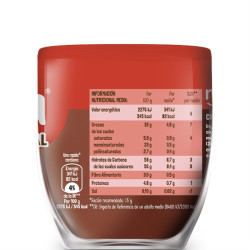 azúcar, aceite de girasol alto oleico, cacao desgrasado en polvo (8,5%), manteca de cacao, leche desnatada en polvo (3,8%), avellanas (3,7%), sólidos lácteos, emulgente (lecitina de soja), aroma. Puede contener otros frutos de cáscara.
