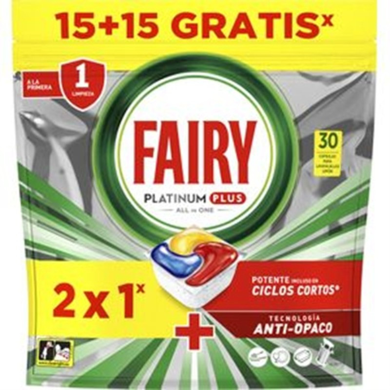 Las cápsulas Fairy Platinum Plus Todo en Uno dejan los platos como nuevos, te ofrecen la mejor colección de limpieza de Fairy para restos difíciles e incluso combaten la falta de brillo acumulada con el tiempo y restauran el brillo original de tus platos. Fairy Platinum Plus te ofrece una limpieza excelente y elimina los restos difíciles incluso en las condiciones de prueba de resistencia de un ciclo breve. Así que, si tienes poco tiempo, no pasa nada. Cambia al ciclo corto. Fairy combina líquido y detergente en polvo en una poderosa cápsula. Su bolsita altamente soluble se disuelve rápido y funciona bien en ciclos cortos, por lo que empieza a limpiar rápidamente para conseguir un resultado excelente. Y son muy fáciles de usar. Sin necesidad de retirar el envoltorio, colócalas en el dispensador de detergente para lavavajillas. Cambia al ciclo corto* y ahorra tiempo, electricidad y agua en comparación con un ciclo estándar regular.