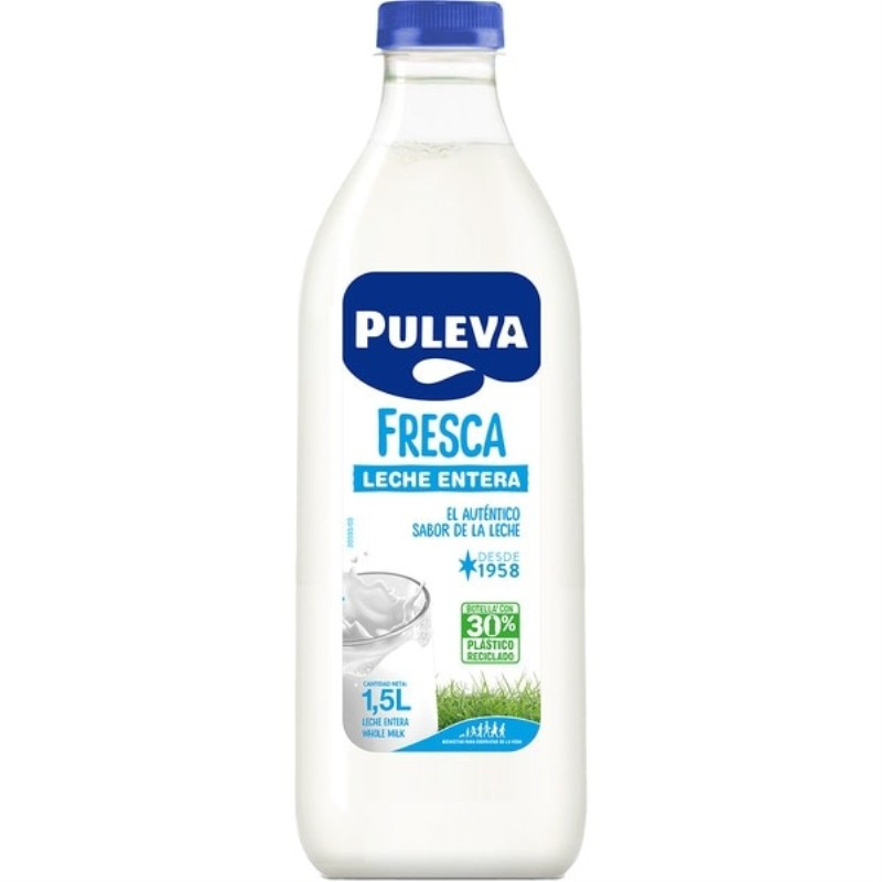 Con Leche Puleva Fresca entera disfruta del sabor original de la leche entera de toda la vida. Se caracteriza por tener un sabor más auténtico, por dejar en el vaso una mancha blanca y por tener que conservarse en frío para mantener sus propiedades naturales, las de la leche en su origen. Además, la leche Puleva Fresca entera, se presenta en un formato (botella de litro y medio) que recuerda a las botellas de cristal que se repartían a domicilio hace décadas.