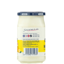 Aceites vegetales (nabina, girasol) (67,5%), agua, yema de huevo pasteurizada (6,3%), vinagre de vino, azúcar, sal, zumo de limón (1%), especias, estabilizante (goma xantana).