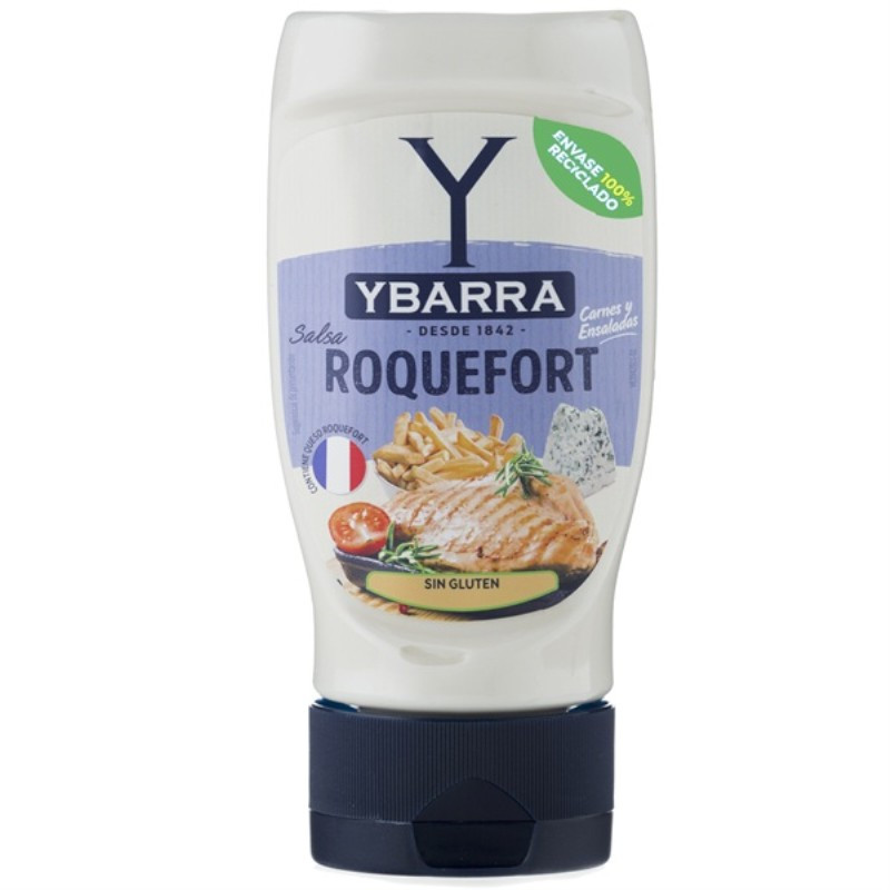 Agua, aceite de girasol (34%), queso Roquefort (leche) (6%), vinagre de vino, yema de huevo pasteurizada, almidón modificado de maíz, azúcar, sal, zumo de limón concentrado, conservador (sorbato potásico), acidulante (ácido cítrico), estabilizante (goma xantana), aroma, antioxidante (EDTA de calcio y disodio).
