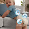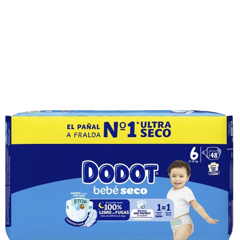 Hasta 100% libre de fugas toda la noche con Dodot Bebé Seco pañal y su barrera Stop Fugas, triple capa absorbente, 2x protección en piernas para evitar los escapes laterales y Flexi-Tiras para un ajuste cómodo. Testado dermatológicamente. ¡Tan Tan seco, Tan Tan Dodot!