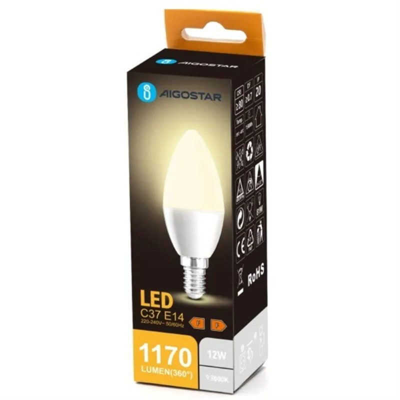 AIGOSTAR BOMBILLA LED C37 E14 12W 3000K