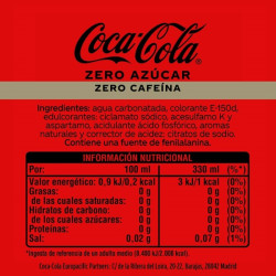 Ingredientes: Agua carbonatada, colorante E-150d, edulcorantes: ciclamato sódico, acesulfamo K y aspartamo, acidulante ácido fosfórico, aromas naturales, aroma cafeína y corrector de acidez: citratos de sodio.