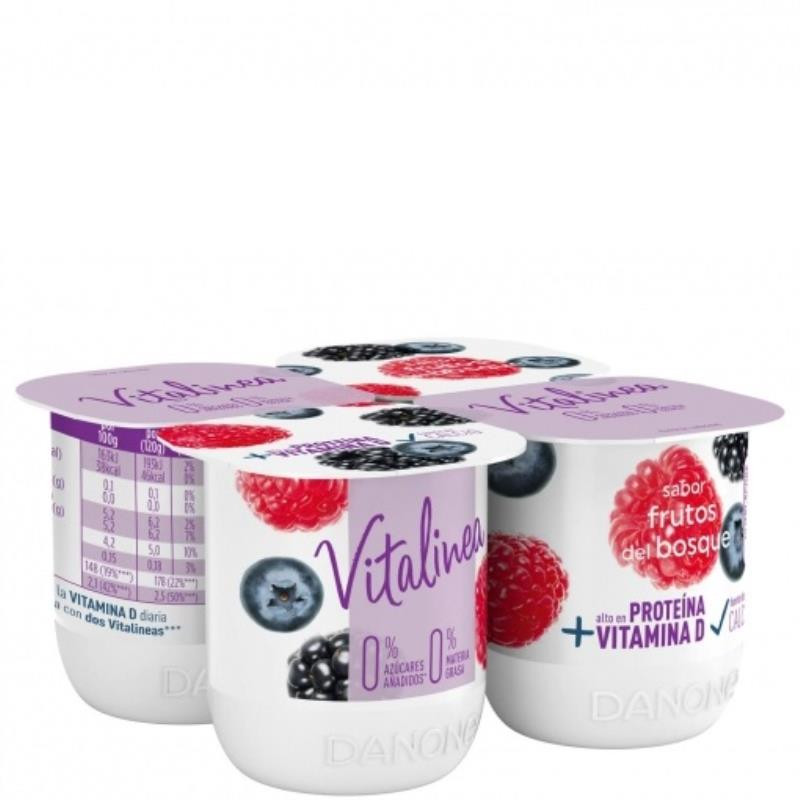 Vitalinea sabor frutos del bosque. Con 0% M.G. y solo 40 kcal/100g. Descubre toda la gama de sabores Vitalinea